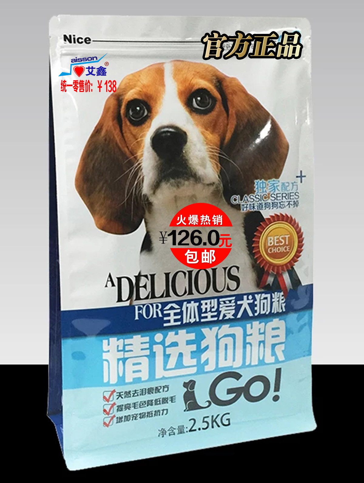 艾鑫狗糧,全體型幼犬主糧。官方商城銷售,“其他銷售渠道銷售均為假冒”。